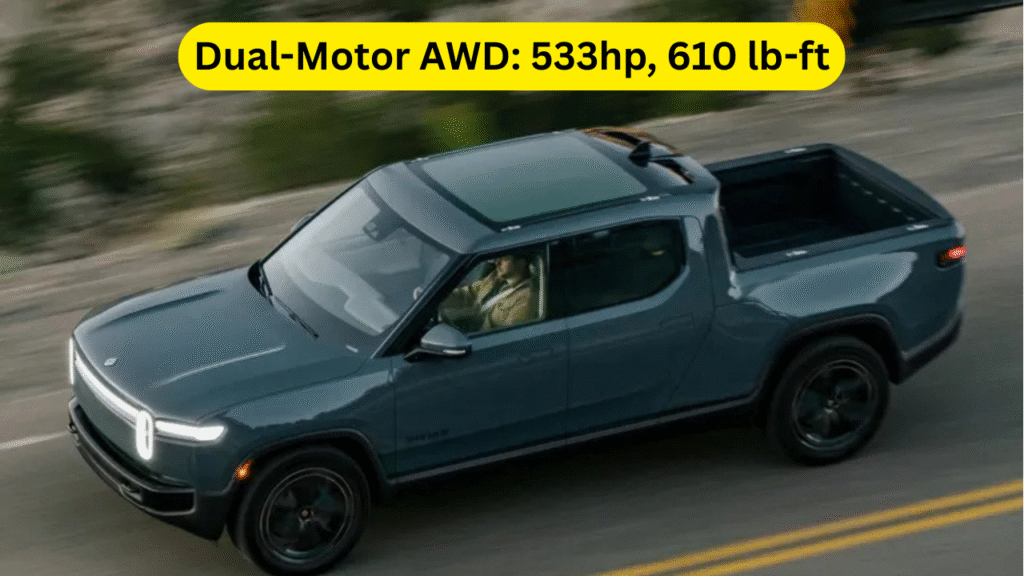 - Dual-Motor AWD: 533hp, 610 lb-ft